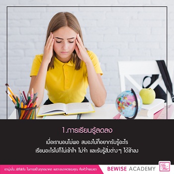 การที่เรานอนไม่พอทำให้สมองคนเราไม่อยากรับรู้อะไร เรียนอะไรไปก็จะไม่เข้าใจ ไม่จำ รับรู้สิ่งต่างๆได้ช้าลงบางครั้งที่เราเรียนแล้วบอกไม่เข้าใจ อาจเป็นเพราะสมองและร่างกายเราไม่พร้อมก็ได้