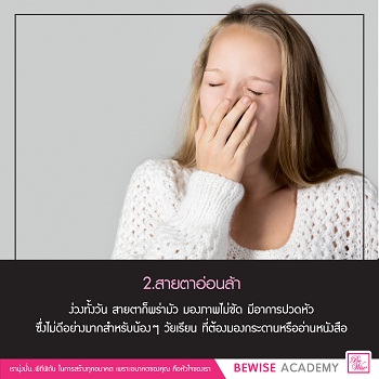 การที่เรานอนไม่พอส่งผลให้สายตาพร่ามัว มองภาพไม่ชัด มีอาการปวดหัว ซึ่งไม่ดีอย่างมากสำหรับน้องๆวัยเรียน ที่ต้องมองกระดาน มองจอ หรืออ่านหนังสือ