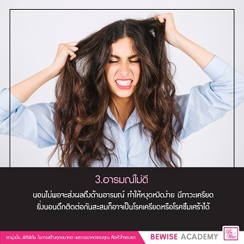 การที่เรานอนไม่พอจะส่งผลถึงด้านอารมณ์ ทำให้หงุดหงิดง่าย มีภาวะเครียด ยิ่งนอนดึกติดต่อกันจะก่อให้เกิดความสะสม จนอาจเป็นโรคเครียด หรือ โรคซึมเศร้าที่ตามมา