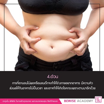 เจอข้อนี้ไปน้องๆผู้หญิงคงเริ่มเป็นกังวล การที่เรานอนไม่พอหรือนอนดึกจะทำให้ร่างกายอยากอาหาร มีความหิว ส่งผลให้กินอาหารไม่เป็นเวลา และอาจทำให้เกิดโรคกระเพราะตามมาอีกด้วย