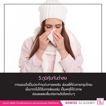 การที่เรานอนดึกเป็นประจำจนร่างกายเคยชิน ส่งผลให้ระบบต่างๆในร่างกายทรุดโทรม เนื่องจากไม่ได้รับการซ่อมแซ่มฟื้นฟู เป็นเหตุให้ร่างกายอ่อนแอ ไม่มีแรง เหนื่อยง่าย เสี่ยงต่อการติดโรคต่างๆ