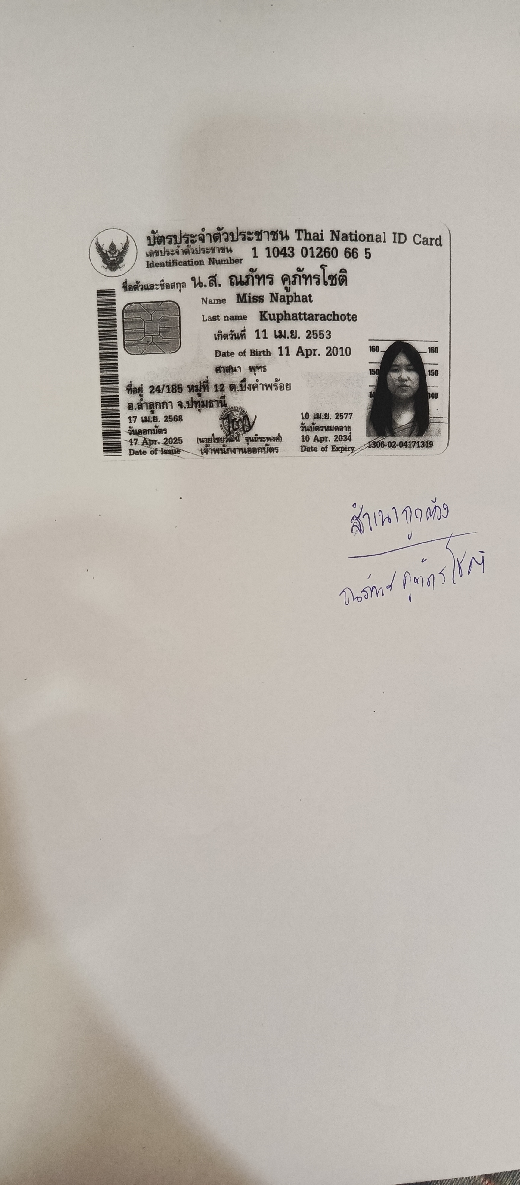 เด็กหญิงทอฟ้า มูลจันทา MissTHOLA MOOLCHANTHA |