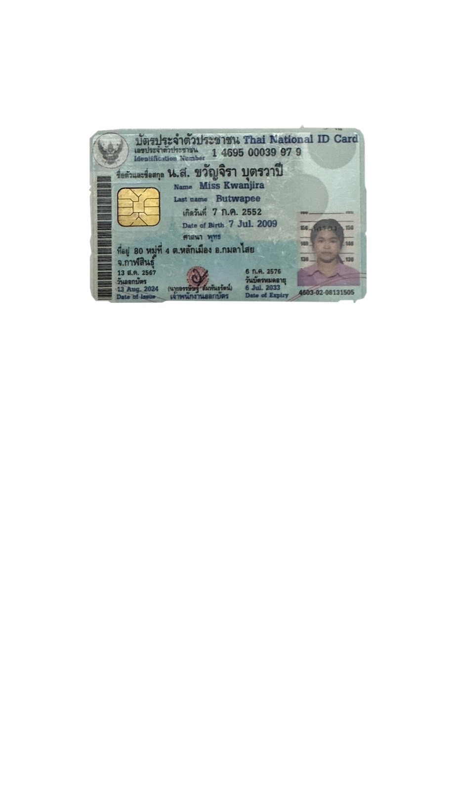 เด็กหญิงศศินิกา แซ่ลิ้ม MissSASINIPA SAELIRN |