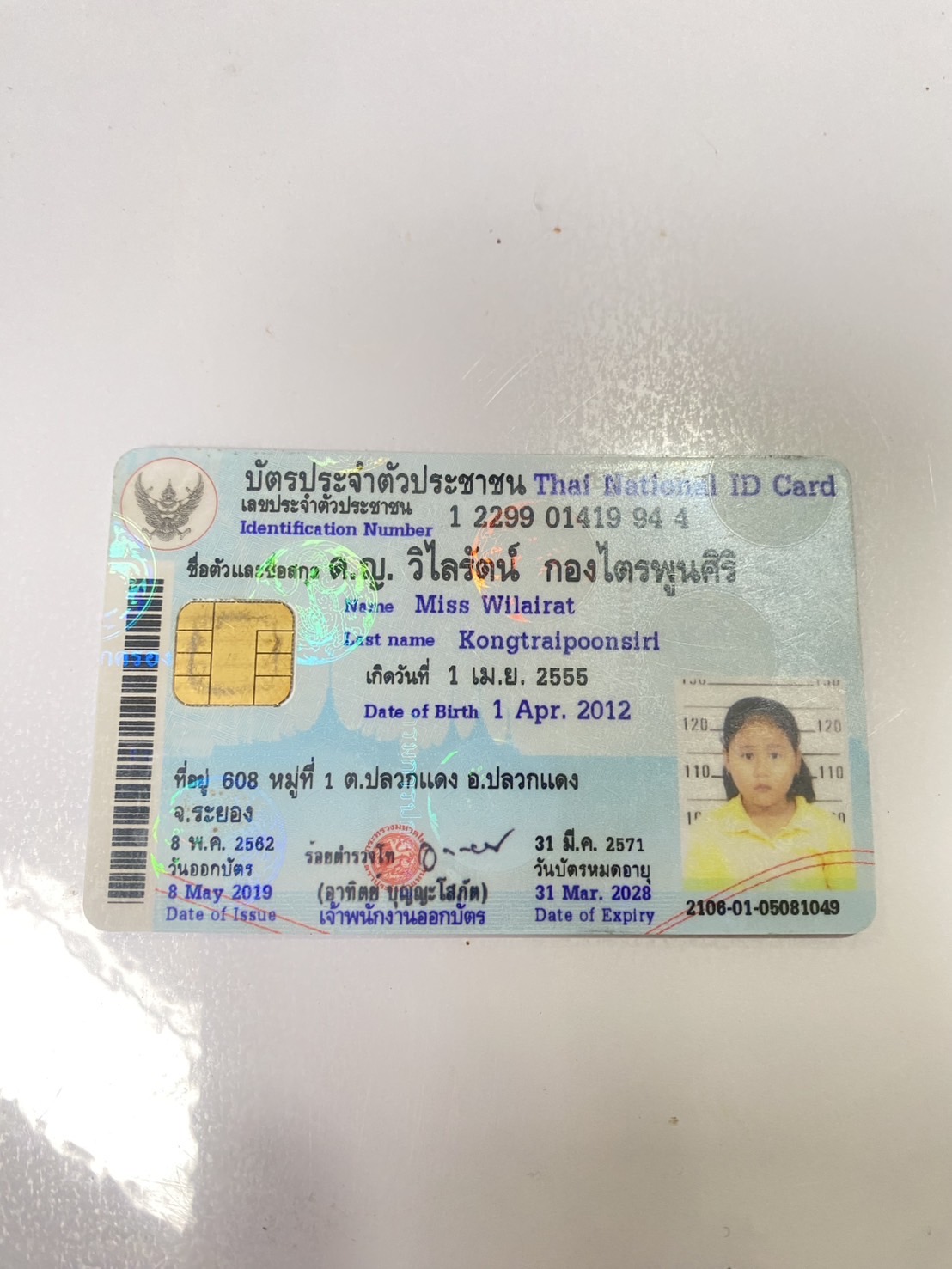 เด็กหญิงอาทิตยา วัชรโยธิน MissARTITTAYA WATCHARAYOTIN |