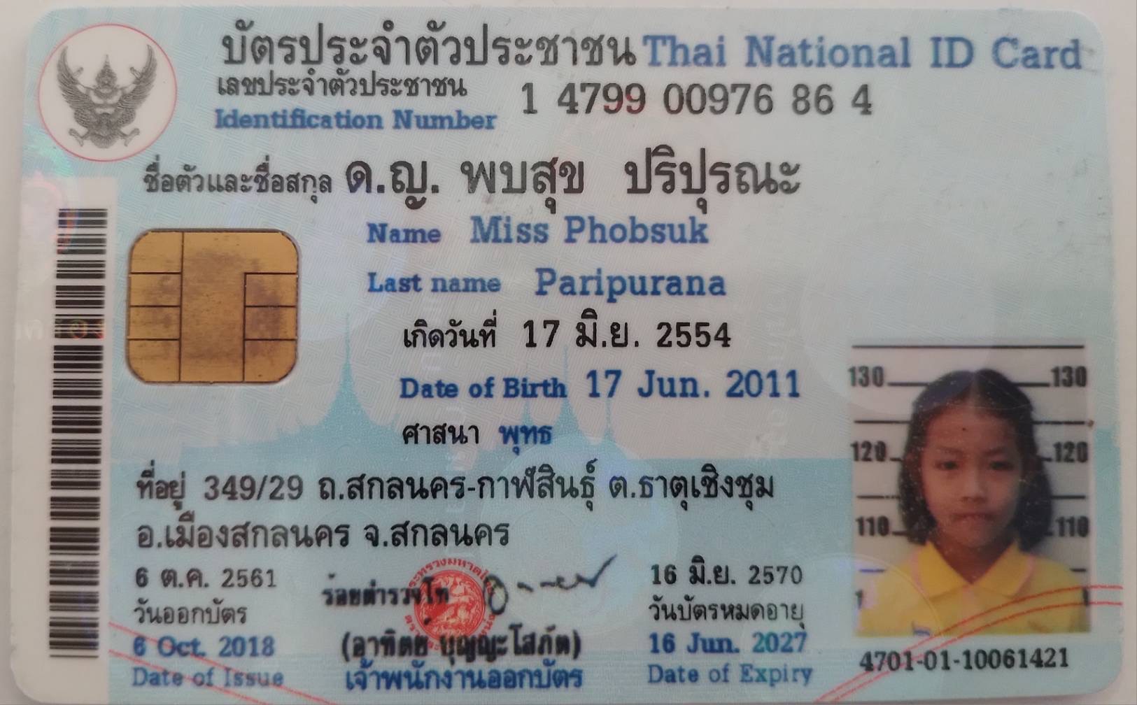เด็กหญิงพบสุข ปริปุรณะ MissPHOBSUK PARIPURANA |