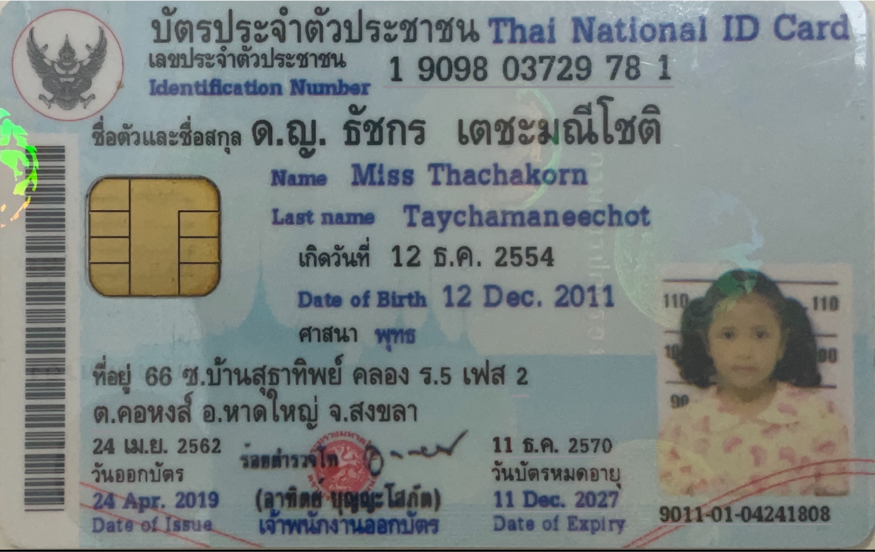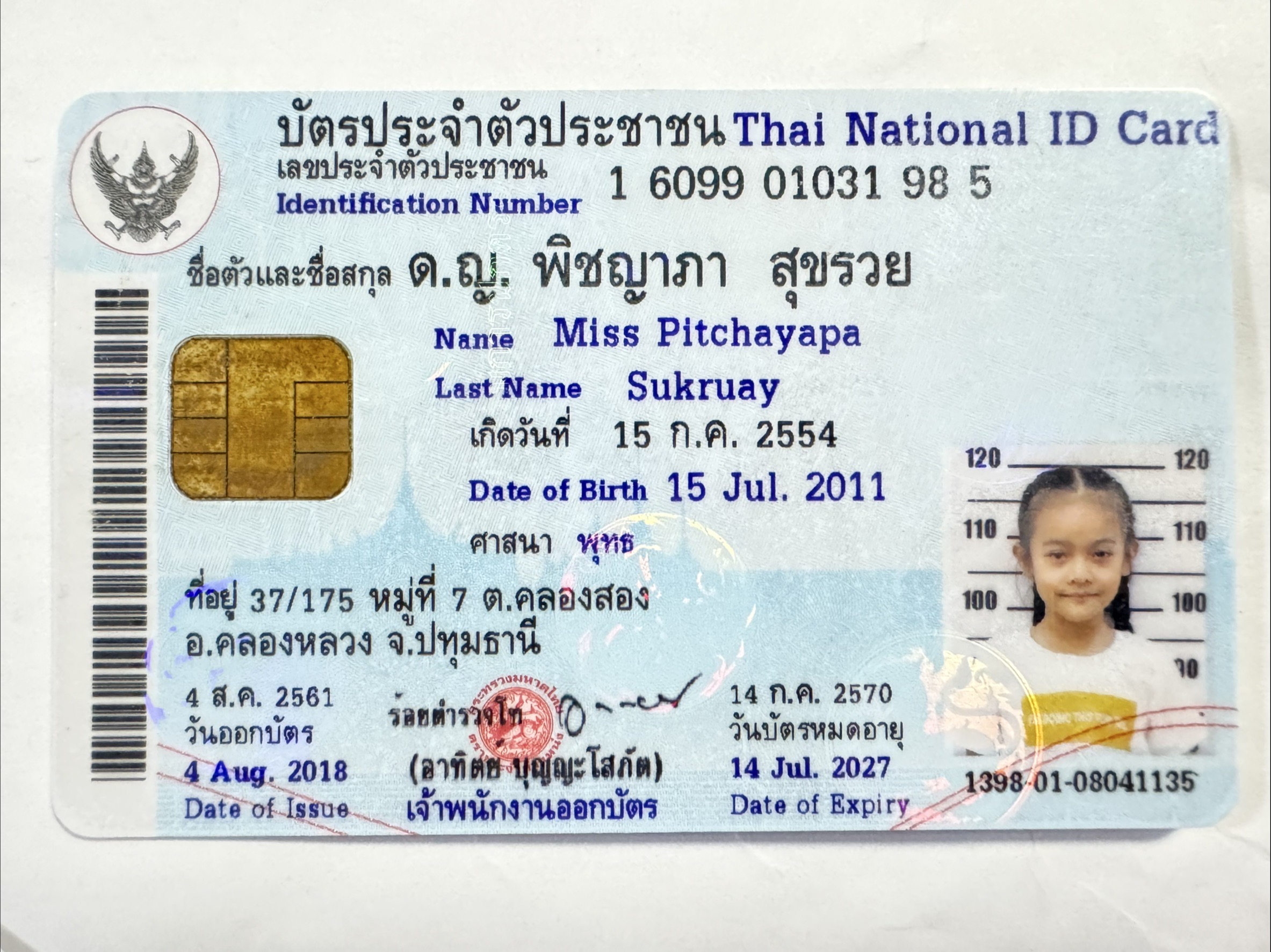 เด็กหญิงณฐา เล็กสกุลดิลก MissNATHA LEKSAKUNDILOK |
