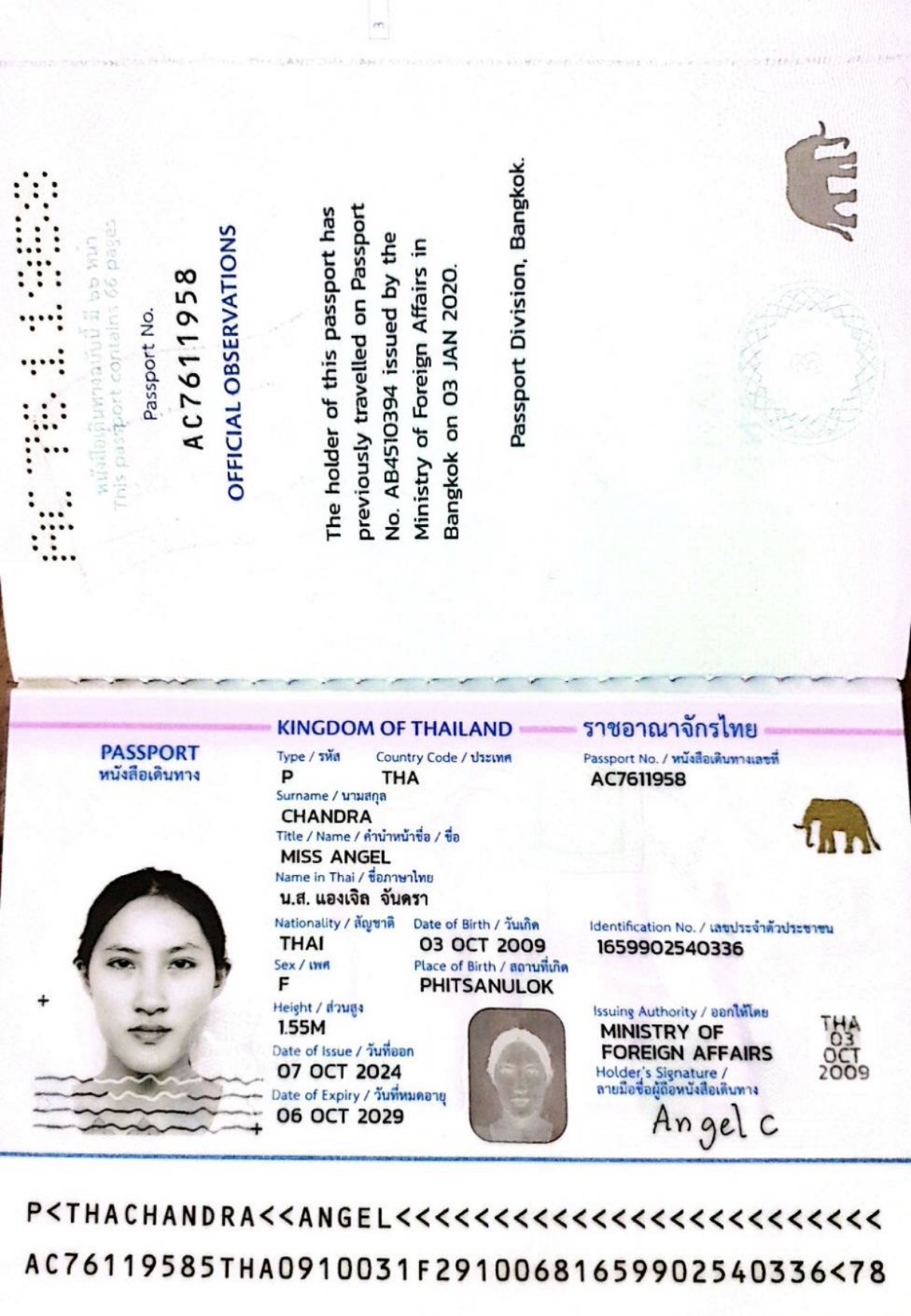นางสาวแองเจิล จันดรา MissAngel Chandra |